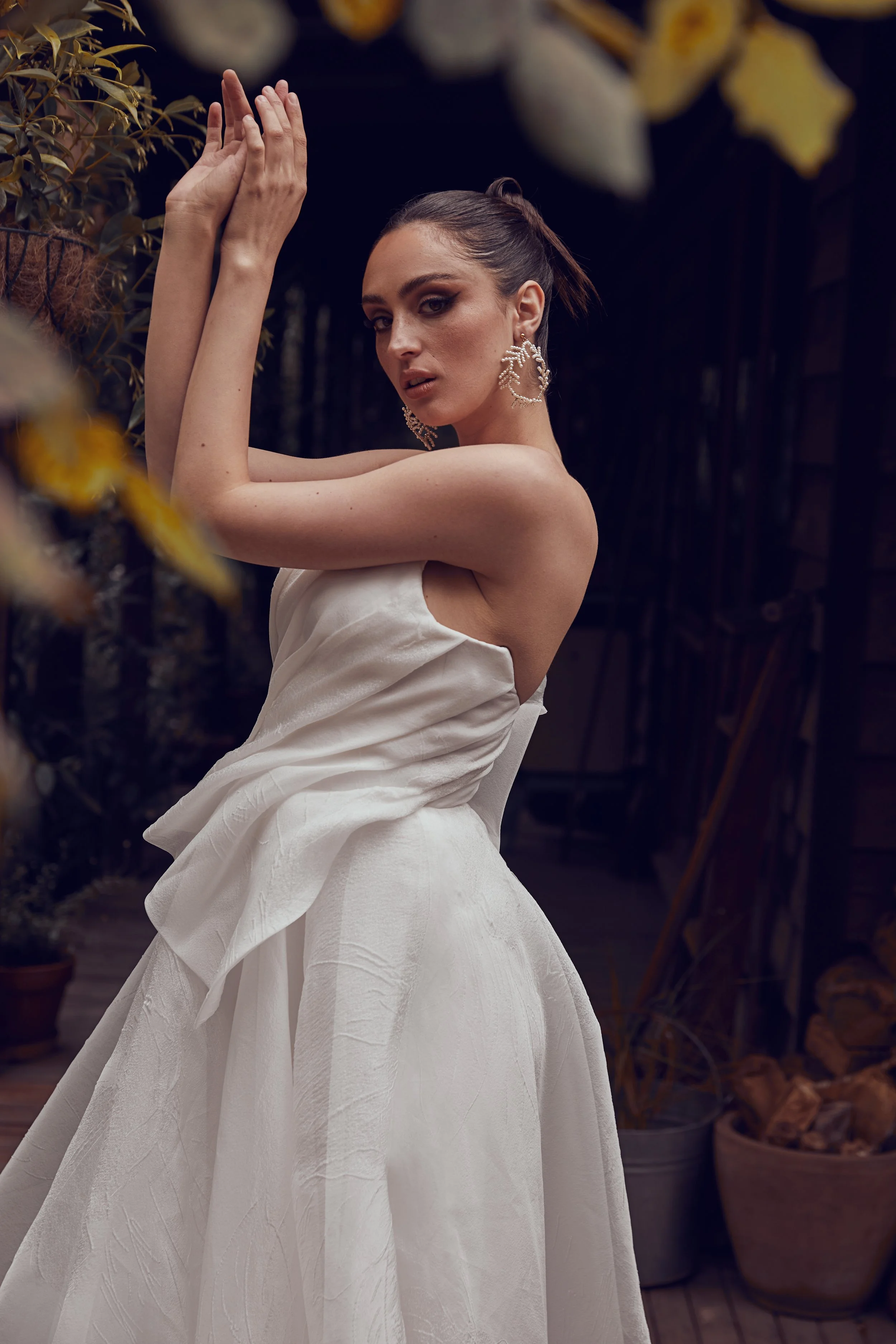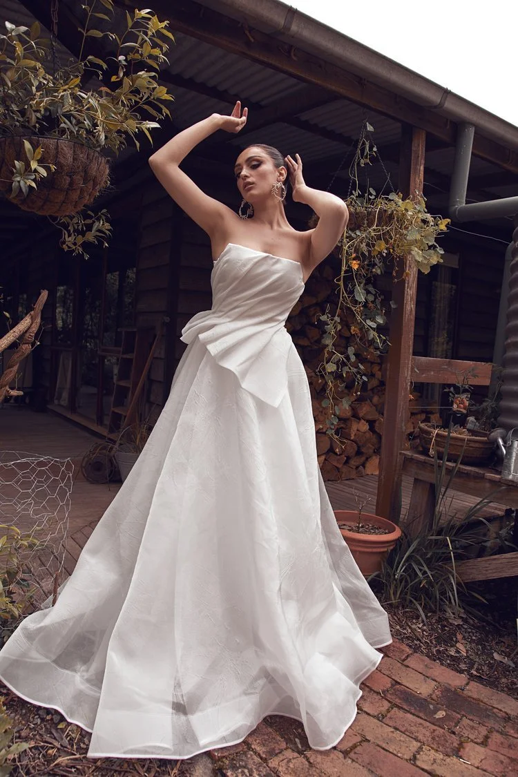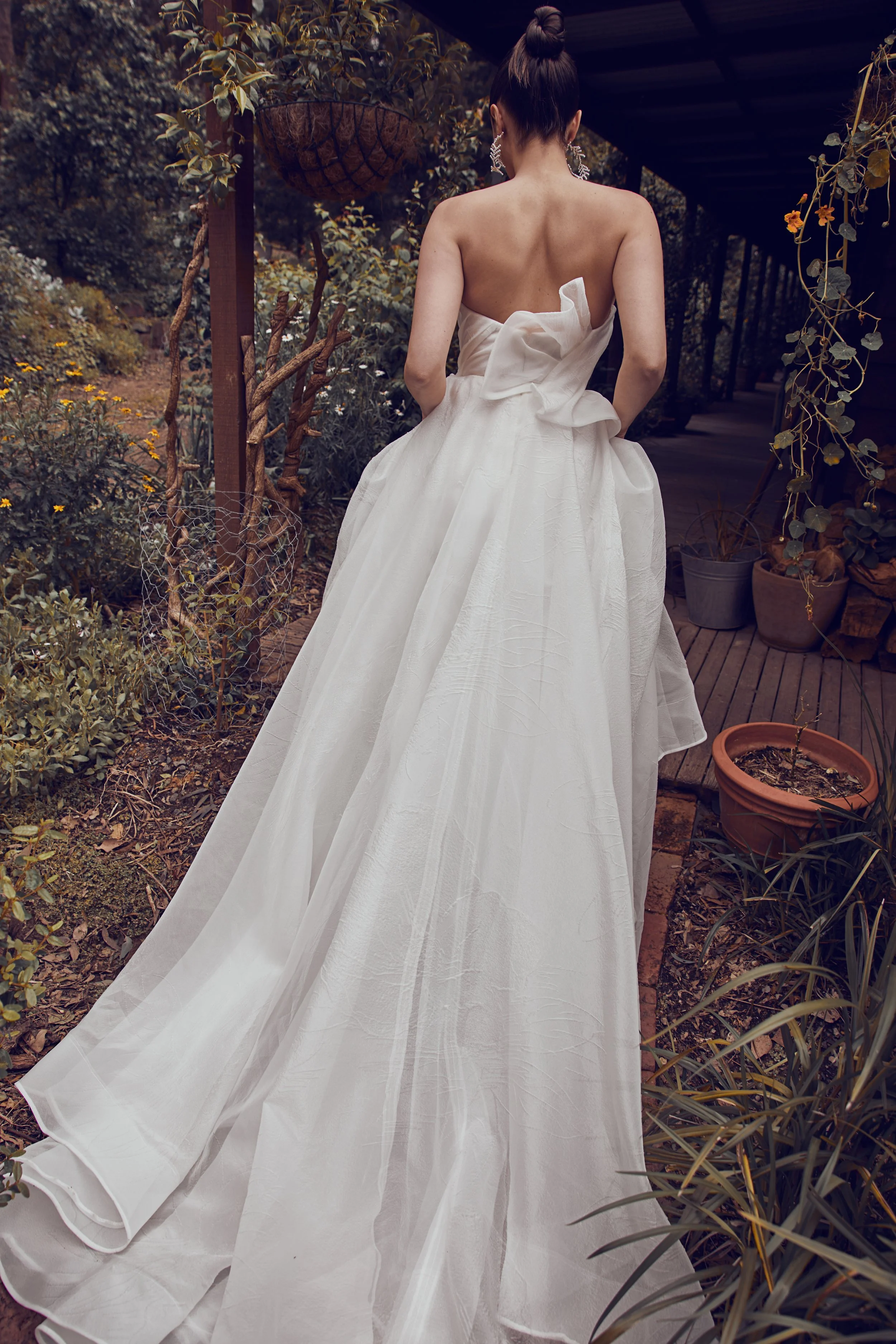 All of our wedding gowns at Sphere Bridal Gallery are made-to-order and take 6-8 months minimum for our designers to create. Once your gown is complete, we recommend an additional 2-3 months for the alteration process. Rush orders may be available for an additional fee, pending approval.